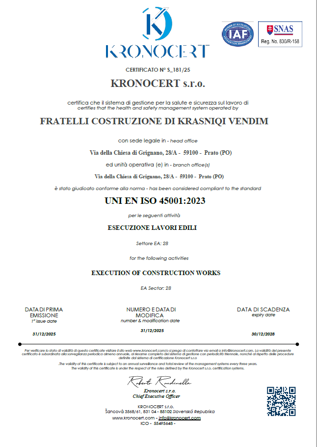 Fratelli Costruzione si distingue non solo per la qualità del lavoro svolto, ma anche per l'attenzione dedicata alla sicurezza e alla sostenibilità. Ogni progetto è gestito con professionalità, seguendo rigorosamente le normative vigenti e rispettando gli standard di sicurezza.